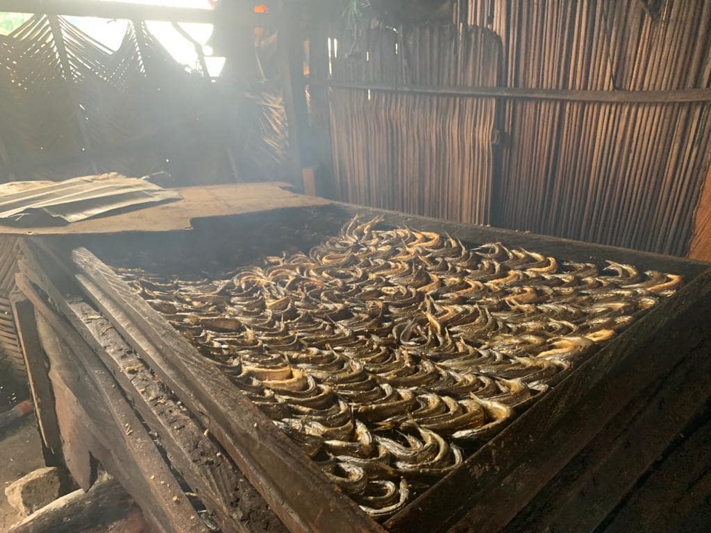 Oke Segun Community -Mama Ireti’s fish being smoked in preparation for sale/Image Credit: LIDA Network