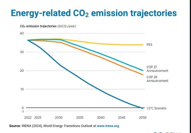 Even if all COP announcements to date were to be fully implemented, a significant CO2 emission gap would still need to be closed by 2050, according to IRENA’s World Energy Transitions Outlook 2024.