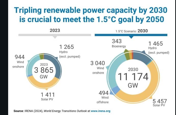 Francesco La Camera, the Director-General of IRENA said: “We have reached crunch time. A robust global finance deal and the next NDCs in 2025 are ‘make or break’ moments to keep 1.5°C alive. NDCs 3.0 provide the last opportunity this decade for countries to step up their stated ambitions. Particularly, an agreement on a new quantified goal for climate finance at COP29 is critical to ensure a just transition, support investments in the Global South and empower countries to step up their NDC ambitions. 1.5°C hinges on efforts by G20 countries. Their NDCs must match global commitments to triple renewable power capacity and double energy efficiency by 2030.”